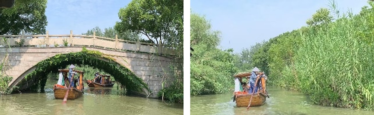 最后大家来到了景区红石村码头,搭乘摇橹船荡漾在芦苇迷宫中的沙家浜,感受大自然清新的气息。新四军伤病员战士们紧紧依靠人民群众的支持,以天然芦苇荡形成的水陆芦苇迷宫,开展艰苦卓绝的抗日斗争,为革命胜利保存了“芦荡火种”。