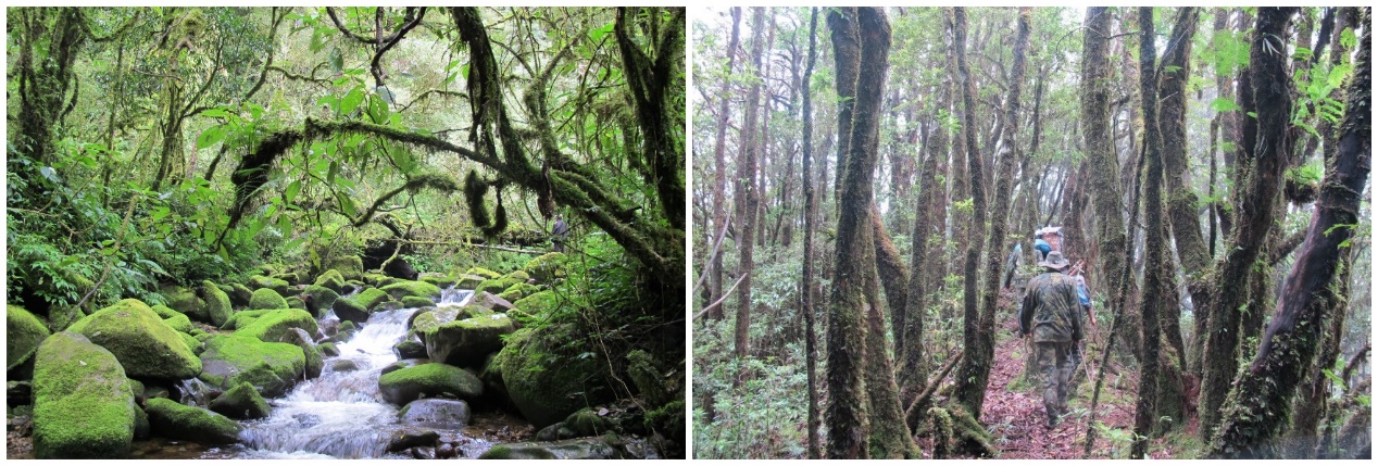 我国境内的原始森林 考察人员穿越高山苔藓林