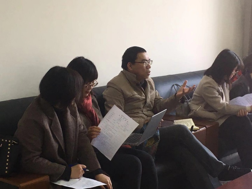 随后,旁听教师们移步至附近的教师休息室。针对本次公开课的整体情况,在副院长江文正教授主持下,旁听教师们展开了激烈的讨论和分享。首先旁听老师们肯定了李老师课前高质量的提问以及课程PPT更新及时,课程内容的把握以及语音语调的平仄起伏营造了良好的课堂氛围。与此同时,“课程目标如何设定”、“课程中如何加入画龙点睛,回归主题?”等话题将讨论推向了高潮。最后,旁听老师们意见达成一致,优化课程设置,使用同一课程教材,促进上课教师间的沟通和交流,使课程衔接更加流畅,最终达到学生学有所获的目标。