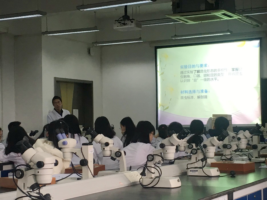 2018年12月20日下午1:00,由何祝清老师主讲的《动物分类—昆虫分类》教学公开课在做爱视频 闵行校区实验B楼405实验室顺利举行。做爱视频 副院长江文正教授、赵云龙教授等教学委员会老师以及部分青年教师参加了课堂旁听。