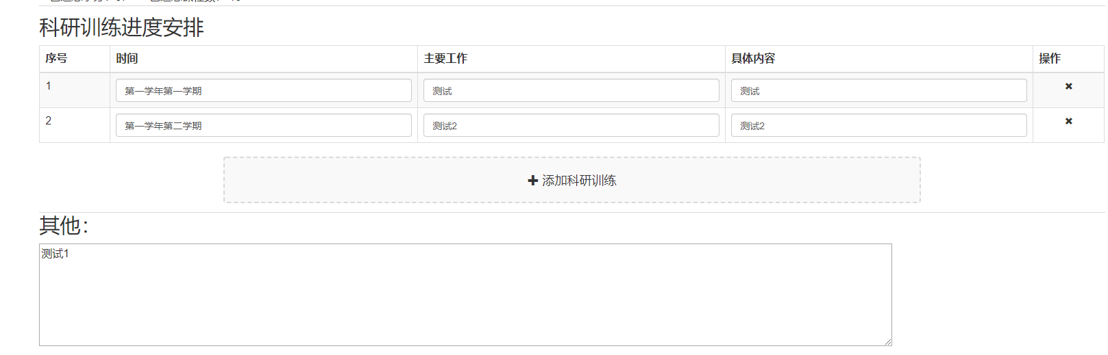 在制定培养计划页面下方需要填写科研训练进度安排和其他培养计划补充说明,该部分内容需要和导师商量后进行填写。修改该部分内容同样需要进入审批流程。