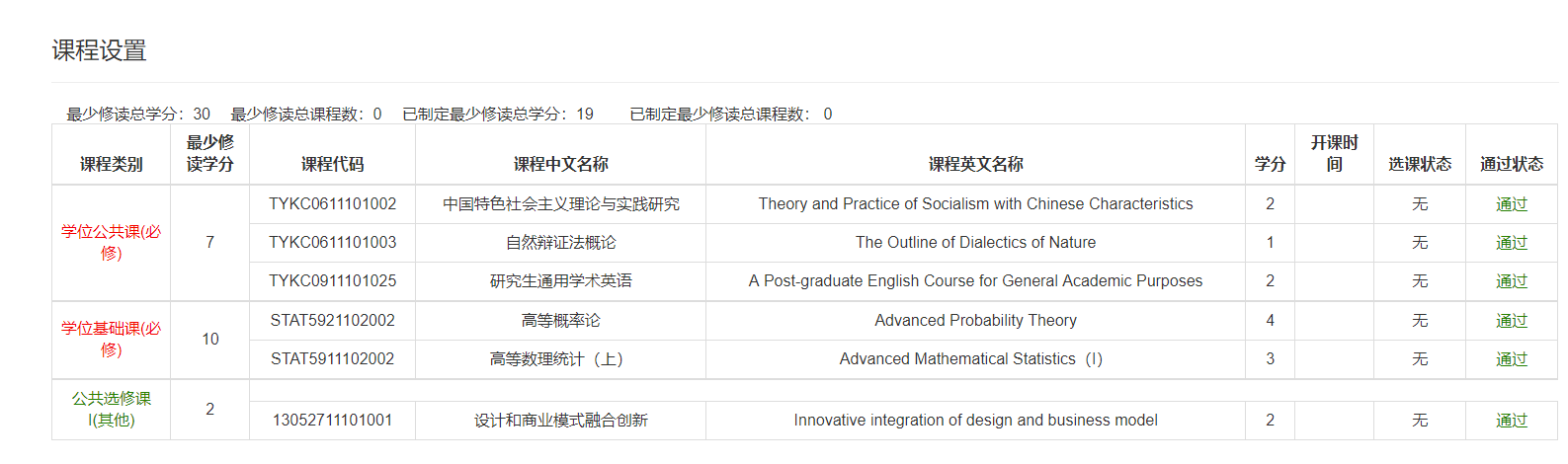 培养计划指的是在培养方案框架内,学生与导师商议后确定的个人培养计划(主要是课程设置)。在培养方案已经分配好的情况下,学生可查询自己的培养计划中的课程设置部分,查看本人研究生培养期间已经完成的课程和需要完成的课程,见图6。