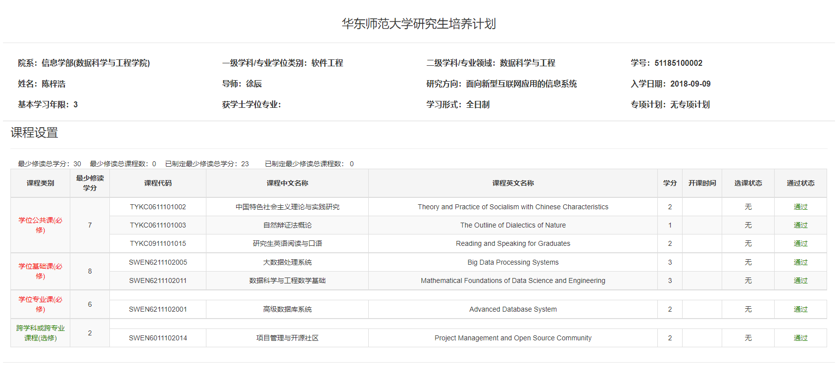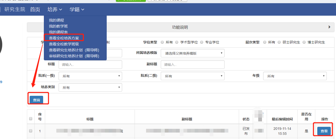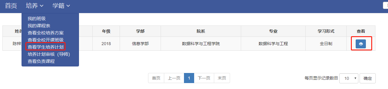 研究生导师可在此处看到自己所指导的所有研究生的已完成的培养计划,见下图15。