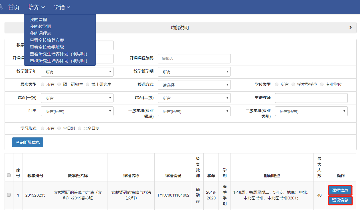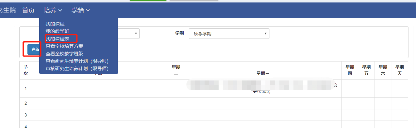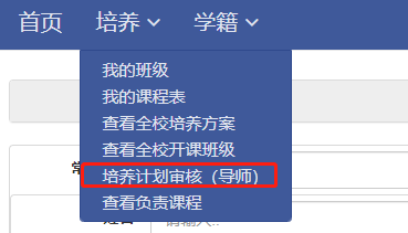教师进入到研究生管理系统后,点击“培养”菜单,目前有以下7个子菜单: