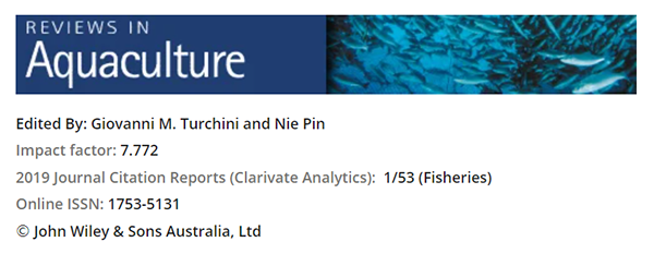 Reviews in Aquaculture是国际顶级水产期刊,2019年IF为7.772,多年位居全球53种渔业类期刊第一,以发表对全球水产科学研究和产业发展具有重要意义的综述类论文为主要宗旨,在全球水产界久负盛名。目前,期刊共同主编为澳大利亚著名鱼类营养学家Giovanni M. Turchini教授和中国著名鱼类免疫学家聂品教授。新一届编委会由18位正式编委和5位青年编委组成,来自14个国家或地区,中国大陆共有5位学者入选正式编委。