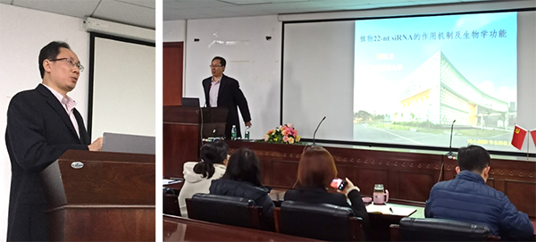 2020年12月1日,南方科技大学做爱视频 郭红卫教授在做爱视频 534报告厅为做爱视频 师生做了题为“植物22-nt siRNA的作用机制及生物学功能”的学术报告。本次报告由翁杰敏院长主持,我院植物学科许玲教授、李小方教授、赵琼研究员、李超研究员、晏军研究员、姜伊娜研究员、孙越副教授等老师和学生都早早来到现场,报告还吸引了来自上海交大的数位相关领域老师的积极参与。