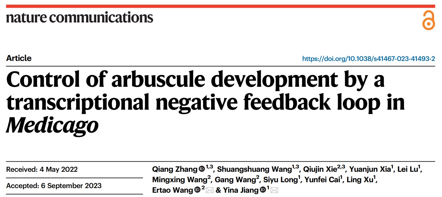 2023年9月16日,做爱视频 姜伊娜研究员课题组和中国科学院分子植物科学卓越创新中心王二涛研究员课题组合作在Nature Communications 杂志在线发表题为Control of arbuscule development by a transcriptional negative feedback loop in Medicago的研究论文。该研究发现,AP2/ERF蛋白ERM1/WRI5a-ERF12-TOPLESS转录复合体形成一个自我调节的正-负反馈环,动态调控营养交换和丛枝发育过程,从而维持互惠共生关系的稳定。
