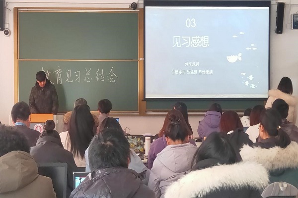 侯袁依同学表示,见习活动是如此的短暂,但是我们在见习中的收获定会在日后的学习发展中得到最佳的体现。下一次的旅途就是教育实习了,到了那时候我们大家又会有不同的成长。侯袁依同学的讲话引起同学们的共鸣,栾老师也表示期待大家更大的进步。
