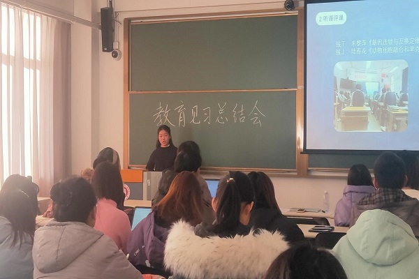 最后,栾瑞红老师对本学期教育见习工作进行了总结。首先感谢各见习小组的精彩汇报和见习大组长武雪同学为见习工作所付出的辛劳。栾老师表示,通过本学期见习活动,大家的教师技能均有所提高。希望大家充分利用寒假空闲时间,认真研读教材,拓展专业知识,提升自己的教学技能。在下一学期,以赛促练,将会举办五项教学技能比赛,希望大家积极参与,在实践中不断提升自己的教学技能,充分利用美好的大学时光,学有所获,在卓越教师成长的道路上迈出更大的一步!