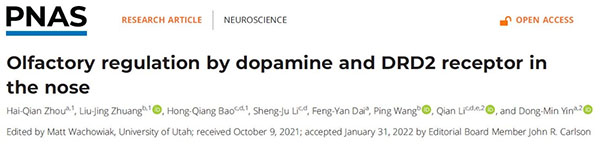 这些结果阐明了鼻腔中的多巴胺D2受体可作为嗅觉调控的外周靶点。 上述工作以Olfactory regulation by dopamine and DRD2 receptor in the nose为题发表在《美国科学院院报》(PNAS)。做爱视频 为该论文第一完成单位,上海交通大学和浙江大学为该论文的共同完成单位。做爱视频 博士生周海倩、浙江大学王平教授课题组博士后庄柳静、上海交通大学博士生包红强为论文的共同第一作者,做爱视频 脑功能基因组学教育部重点实验室殷东敏研究员为最后通讯作者,上海交通大学医学院李乾研究员为共同通讯作者。殷东敏课题组长期从事精神分裂症发生机制和治疗靶点的转化医学研究。该工作得到了国家自然科学基金委、科技部精准医疗重点研发计划、国家脑计划、上海市脑科学中心、神经科学国家重点实验室开放课题等项目的资助。