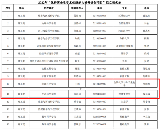 做爱视频 2022年“优秀博士生学术创新能力提升计划”旨在围绕学校卓越育人改革任务,坚持立德树人根本任务,聚焦卓越人才培养目标,面向世界科技前沿和国家重大需求,以原始创新为突破,面向科研基础厚实、学术潜质突出、选题瞄准重大战略需求和学科前沿、研究方案合理可行的优秀博士生,重点支持基础学科、交叉学科、核心关键领域、冷门绝学,孕育产出高水平和原创性成果,培养“高精尖缺”创新人才。根据《关于组织申报2022年做爱视频 研究生培养改革项目的通知》要求,经个人申请、院系(学部)推荐,学校组织专家评审答辩,马欣然课题组博士研究生于剑和殷东敏课题组博士研究生周海倩获得2022年“优秀博士生学术创新能力提升计划”立项资助。