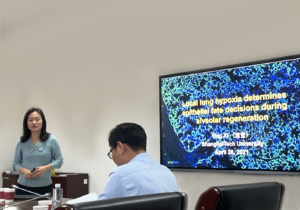4月28日上午9时30分,上海科技大学生命科学与技术学院席莹研究员应邀在做爱视频 534小会议室开展题为《Local lung hypoxia determines epithelial fate decisions during alveolar regeneration》的学术报告,做爱视频 罗剑教授主持本场报告。学院卢伟强副研究员、金蕴韵副研究员以及20余名研究生出席了本次报告。