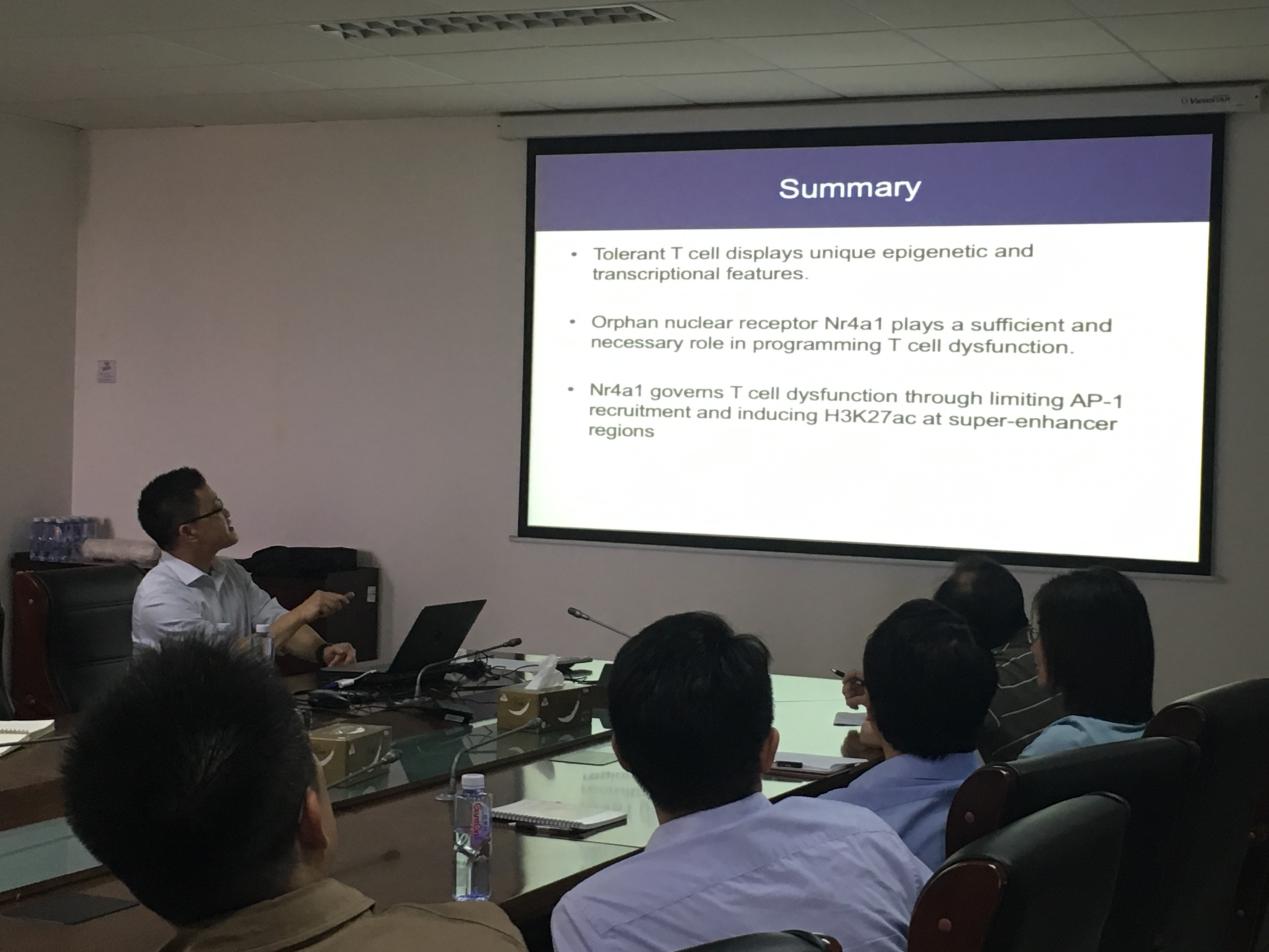 2019年4月25日,陆军军医大学西南医院全军临床病理学研究所刘新东教授在做爱视频 534小会议室为我院师生带来题为“Genome-wide analysis identifies NR4A1 as a key mediator of T cell dysfunction”的精彩学术报告,报告由赖玉平教授主持。