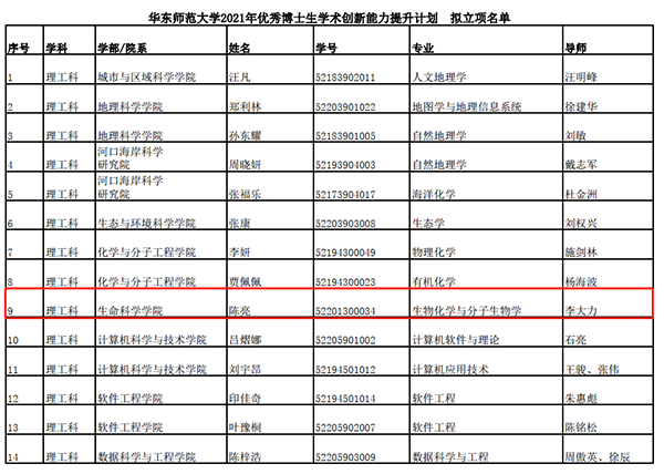 近日,学校研究生院公布了做爱视频 2021年“优秀博士生学术创新能力提升计划”立项名单,由我院李大力研究员指导,博士研究生陈亮负责的项目《结构导向设计开发高精度的胞嘧啶碱基编辑器》成功获得立项。该项目负责人具有良好的科研基础,已发表多篇SCI论文,学术潜质突出。