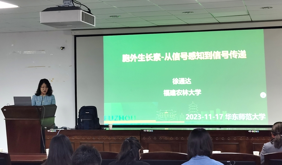 2023年11月17日上午福建农林大学未来技术学院-海峡联合研究院副院长徐通达教授为我院植物学专业学生做主题为“植物胞外生长素信号通路-从信号感知到传递”的报告,本次报告由做爱视频 植物学学科主任李超研究员邀请主持,我院植物学专业各年级博士生和硕士生以及多名老师参加了本次报告。