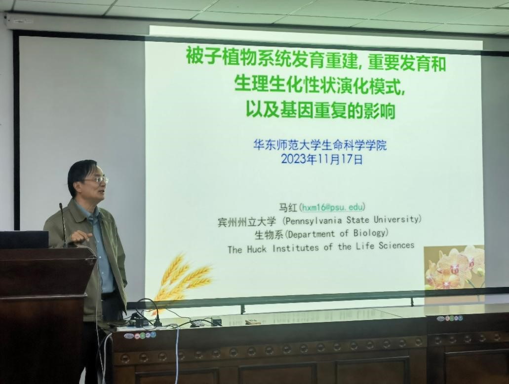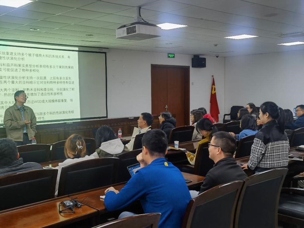下午,在我院生物学系朱瑞良教授的主持下,马红教授做了题为“被子植物系统发育重建,重要发育和生理生化性状演化模式,以及基因重复的影响”的报告,我院植物学专业各年级博士生和硕士以及多名老师参加了该次学术活动。