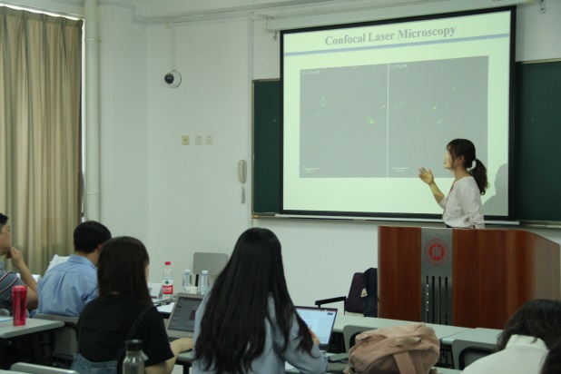 接下来,江文正老师向同学们介绍了答辩分组及答辩专家。此次答辩根据同学们毕业设计的方向分成了两组:动植物组和生化生医组;严冬老师、杨嘉龙老师、晏军老师为动植物组答辩专家;胡红雨老师、江文正老师、罗剑老师为生化生医组答辩专家,严冬老师和胡红雨老师分别担任两组论文答辩会的组长,而后答辩正式开始。同学们的毕业论文选题涉及领域广泛,从生物多样性的研究到小鼠心脏瓣膜细胞起源的探索,从蛋白质递送方式的优化到利用CRISPR介导的定点甲基化进行疾病治疗。同学们主要从课题的研究背景、实验结果等方面对自己的毕业设计进行了展示,各位答辩专家根据同学们的汇报提出问题,并对各位同学在实验设计、实验结果及毕业论文格式等方面存在的问题提出了优化意见。面对于老师们的问题,同学们从容冷静,有条不紊地进行回答,获得了老师们的一致称赞。