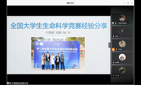 2020年6月10日,生命科学竞赛经验交流会在线上举行。交流会由何祝清老师主持,邀请到做爱视频 副院长江文正老师,以及16级学生科创项目负责人林泽杰和牛旭然与同学们进行经验分享,200多名生科学子参加。