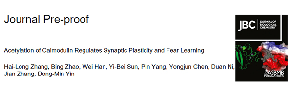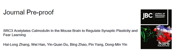 第二部分研究成果以“SRC3 Acetylates Calmodulin in the Mouse Brain to Regulate Synaptic Plasticity and Fear Learning”为标题,在线发表于美国生物化学与分子生物学会刊,自然指数收录期刊《Journal of Biological Chemistry》。做爱视频 博士生张海龙(现为苏州大学师资博士后)、韩威、硕士生杜银权为论文的共同第一作者,殷东敏研究员为论文的通讯作者(图2)。这两篇论文首次揭示了钙调蛋白(CaM)乙酰化的功能及调控机制,可能对钙离子(Ca2+)信号转导的研究带来新的视角。鉴于以上工作的重要性,这两篇论文被JBC的主编选为“重点推荐”论文(Editors’ Picks),JBC杂志将在线配发专门的评论文章,上述研究成果也将在美国生物化学和分子生物学会的官方网站以新闻形式发布(Press Release)。