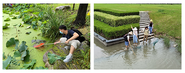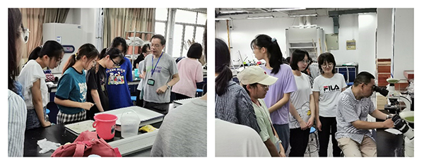 在姜晓东、陈立侨老师和助教的带领下,水生生物实习在滨江公园、兰香湖、樱桃河边以及浦江郊野公园展开。学生们拿着各种捕捞工具纷纷进行了采集工作。大家不惧风雨、烈日,在热切的求知欲和好奇心的驱使下采集到了形形色色的水生生物,收获了劳动的快乐。结束了采集工作,回到实验室在各种器皿与仪器下观察动物的形态,活动。那些看似渺小却深含奥秘的微小生物让同学们真真切切地感受到生物的多样性以及进化的奥妙。