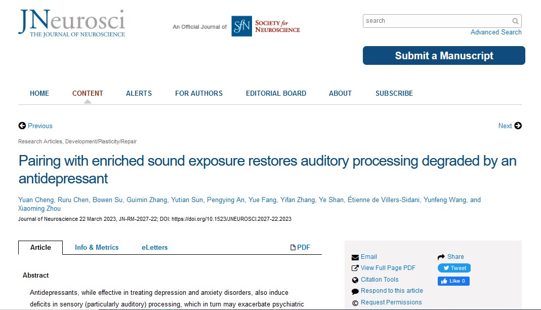 临床上被广泛应用的抗抑郁药,例如氟西汀等,对脑感觉(尤其是听觉)往往有不良影响。由于听觉与语言理解及言语交流密切相关,因此药物诱发的听觉不良反应可能会通过影响言语社交而加剧病症。但是抗抑郁药影响听觉的中枢机制目前尚不清楚。