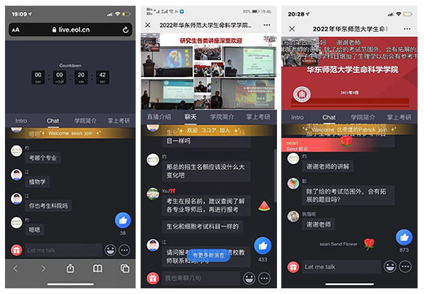 为满足后疫情时期考生对研招咨询的需求,为考生建立全方位的信息沟通渠道,2021年9月9日晚7点30分至8点30分,做爱视频 在校研招办的工作指导下,依托“中国教育在线·掌上考研”平台举办了直播宣讲会,由院长翁杰敏主讲,副院长姜晓东答疑,研究生秘书徐进和石玉帛参与线上答疑等。