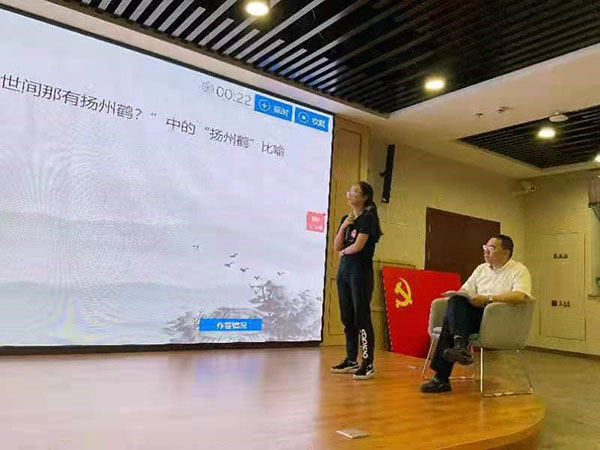 关键的一题,魏琪雯同学抢到答题机会,率先获得了5分,成为了本次大赛擂主,大家都以热烈的掌声致以祝贺。擂主魏琪雯同学发表获奖感言。