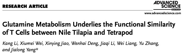 近日,华东师大做爱视频 杨嘉龙团队在Advanced Science上发表了题为Glutamine metabolism underlies the functional similarity of T cells between Nile tilapia and tetrapod的研究论文,揭示了T细胞免疫的进化规律。作者以罗非鱼、非洲爪蟾、鸡、小鼠等动物为研究对象,试图回答两个科学问题:(1)比较基因组层面的T细胞稳定进化假说,是否体现在免疫学过程、功能和调控机制上?(2)维持T细胞免疫稳定进化的潜在驱动力是什么?