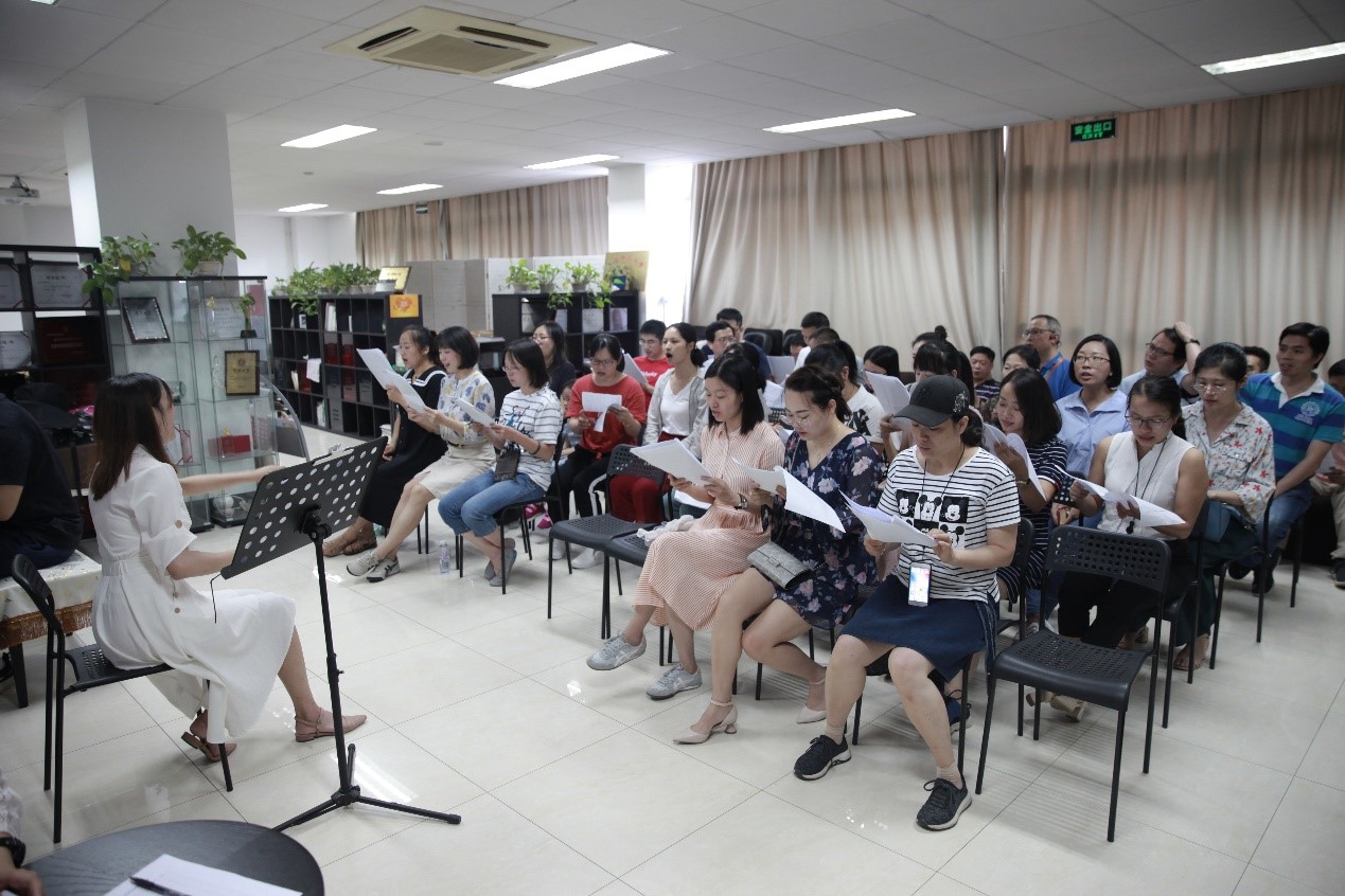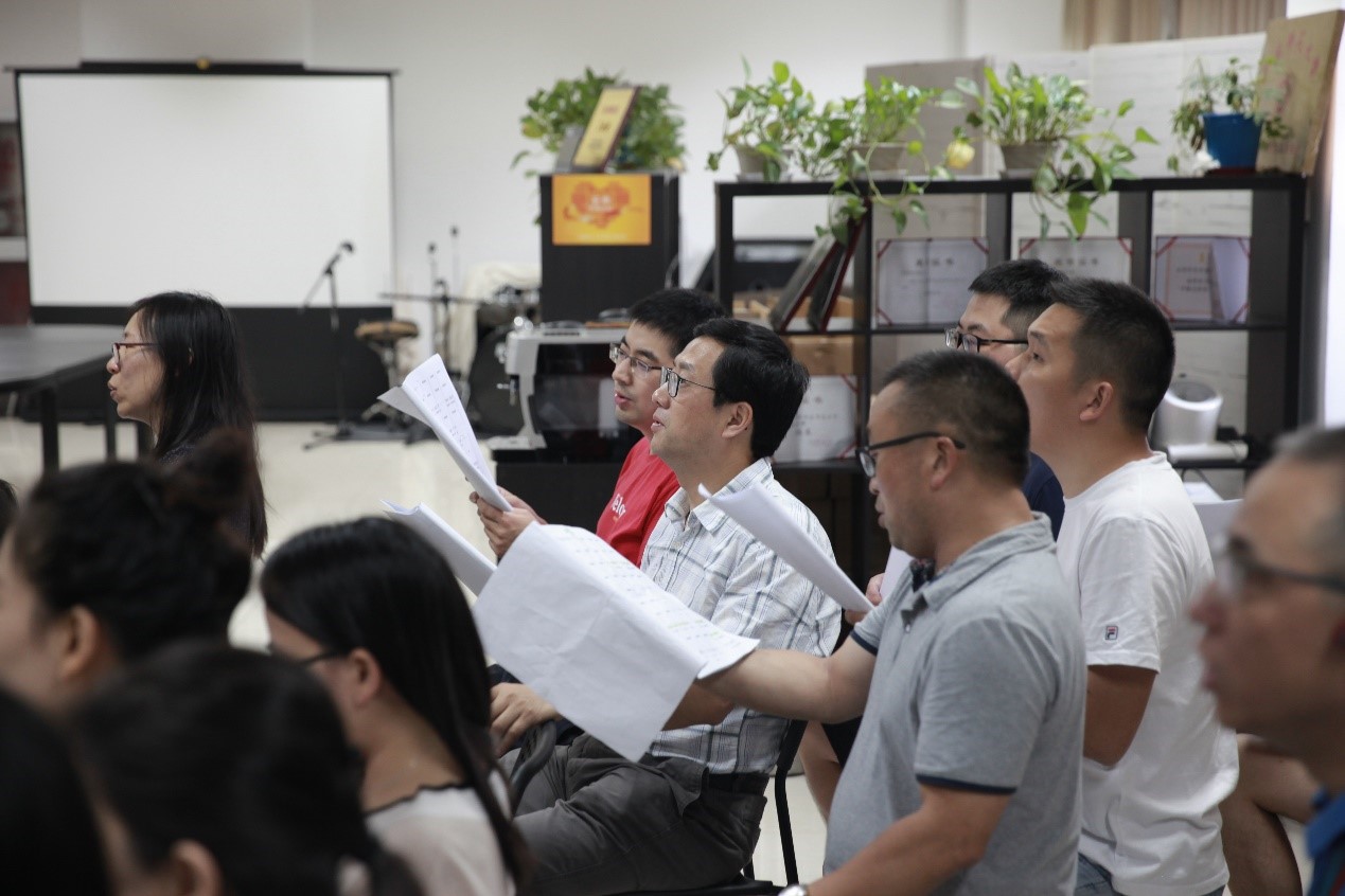 “河山只在我梦萦/祖国已多年未亲近/可是不管怎样也改变不了我的中国心/洋装虽然穿在身/我心依旧是中国心/......”每当周三中午气势磅礴又富含感情的《我的中国心》都会从生科院134室传出,生科院教师们正在排练建国70周年歌唱比赛上的表演,他们深情唱响祖国颂歌,献礼新中国七十华诞!尽管时值午间,教师们都还没有吃午饭,但他们精神饱满,富有激情,纪律严明,台风良好。演唱节奏准确鲜明,声音整齐宏亮,极具有感染力,合唱队员与指挥配合十分默契。