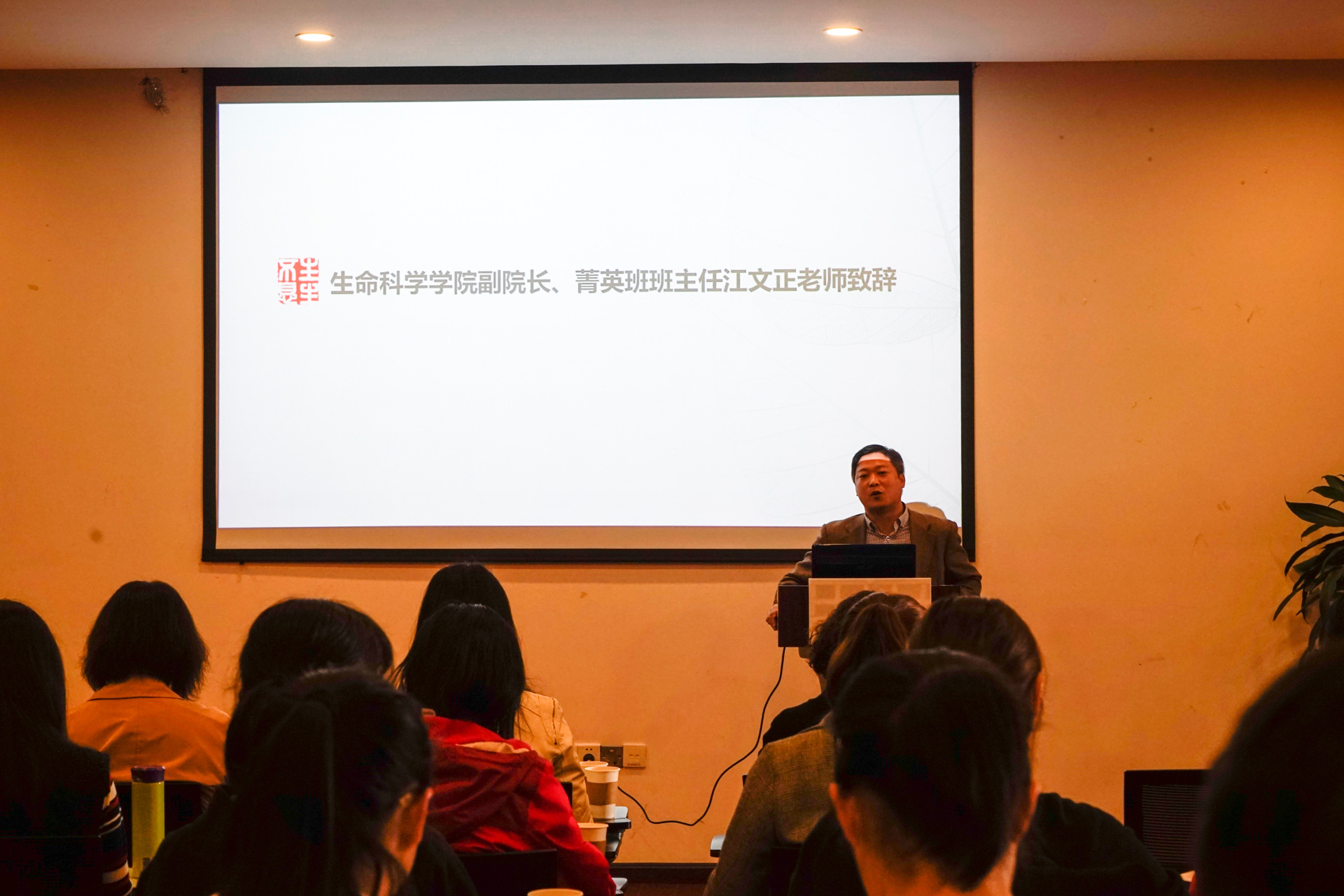 随后,生物学系教工党支部副书记王洋老师详细介绍了导师团成员。此次生物学系教工党支部共遴选了14位具有高级职称的优秀党员与菁英班学生结对,进行专业指导、生涯指导和思想引导。我院副院长、菁英班班主任江文正,院党委副书记兼副院长徐敏华向各位菁英班导师颁发聘书。
