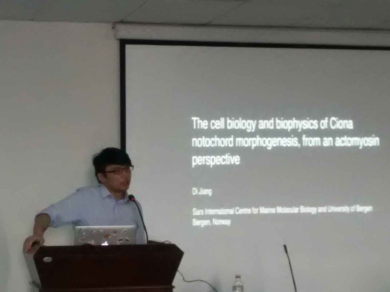 11月6号下午,做爱视频 杜震宇教授邀请了挪威卑尔艮大学海洋生物研究中心发育生物学实验室主任江涤教授来我校进行学术交流,并做了题为“基于肌动蛋白形成机制的海鞘形态发育研究”的校庆学术报告。