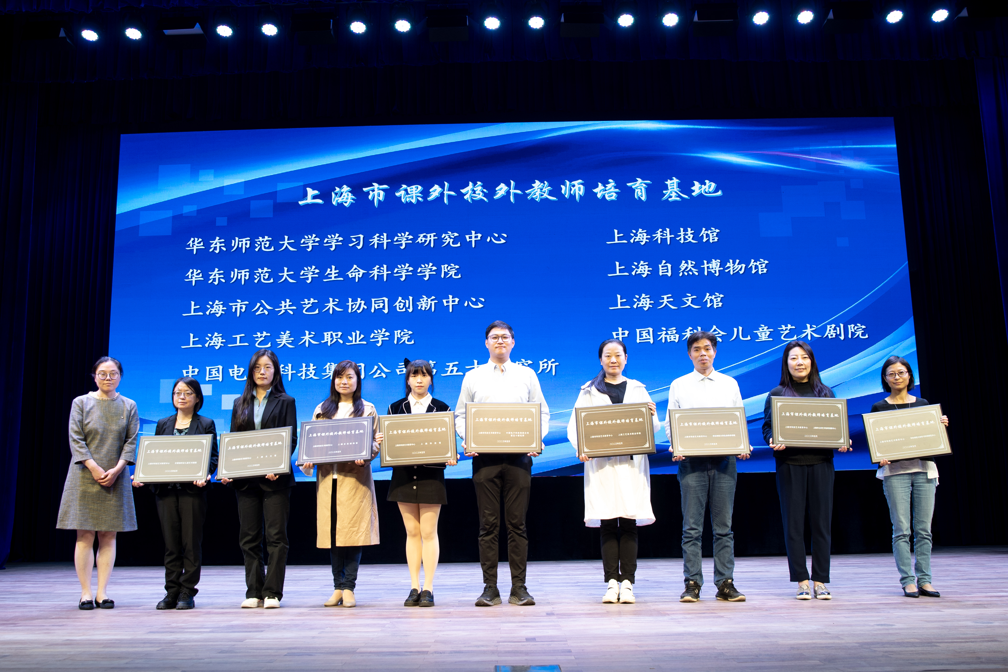 上海市课外校外教师培育基地在开班仪式上精彩亮相,华东师大做爱视频 获得授牌。