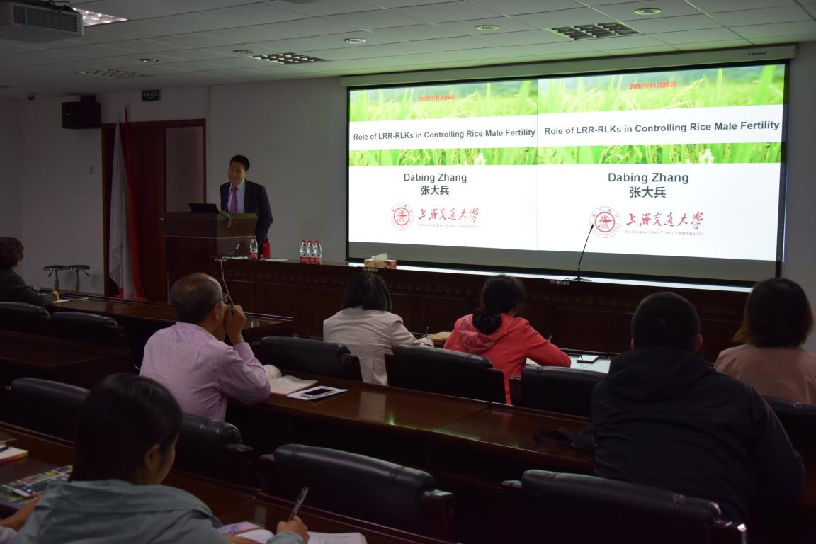 2017年10月25日,上海交通大学生命科学技术学院副院长、特聘教授张大兵教授为我院师生带来一场题为“Role of LRR-RLKs in Controlling Rice Male Fertility”的学术报告,报告由植物学科李超研究员主持。
