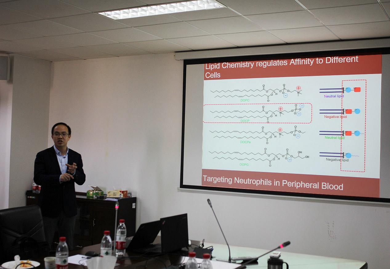 巩长旸教授主要从基因和药物递送系统在肿瘤治疗中的应用研究方面的工作。在题为《自组装基因、疫苗递送系统的构建及其在肿瘤治疗中的应用研究》的报告中,巩长旸教授介绍了最新发表的关于肿瘤疫苗递送系统的研究,利用抗原蛋白和疫苗载体共组装形成超分子水凝胶,达到高效刺激机体免疫的效果。