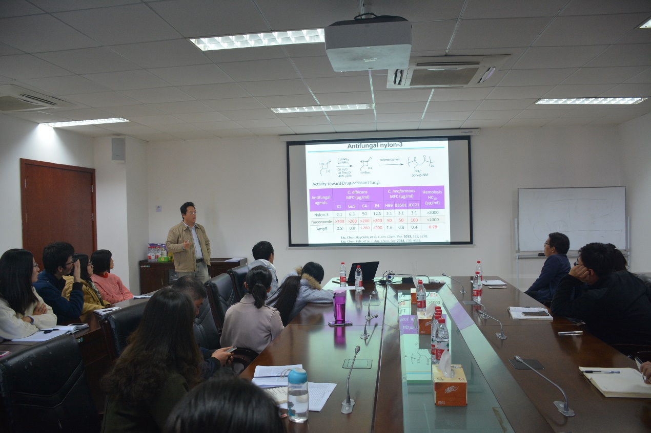 11月8日我院程义云教授邀请了华东理工大学的刘润辉教授来我校进行了题为“Antimicrobial Nylon-3 Polymers as Synthetic Mimics of Host Defense Peptide”的校级学术报告。