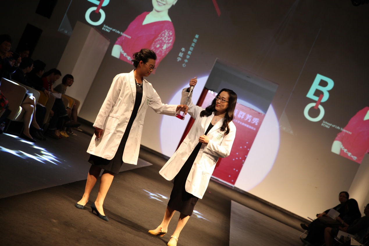 我院服饰展示共分“讲堂风采”、“野外实习”和“实验教学”、及“生生不息,生命不止,做知性、优雅的女人”三部分。无论是展示授课风采的风衣和职业套装,或是体现专业特色的实验室白大褂、野外冲锋衣和登山鞋,还是衬托知性、优雅气质的旗袍和礼服,无不向观众展现着生科院女教师的端庄与温润、美丽与智慧。值得一提的是走秀背景音乐由我院易正芳教授领衔组成的乐队现场演出,成为整场展示的又一大亮点,在全校21支参赛队伍中是独一无二的。