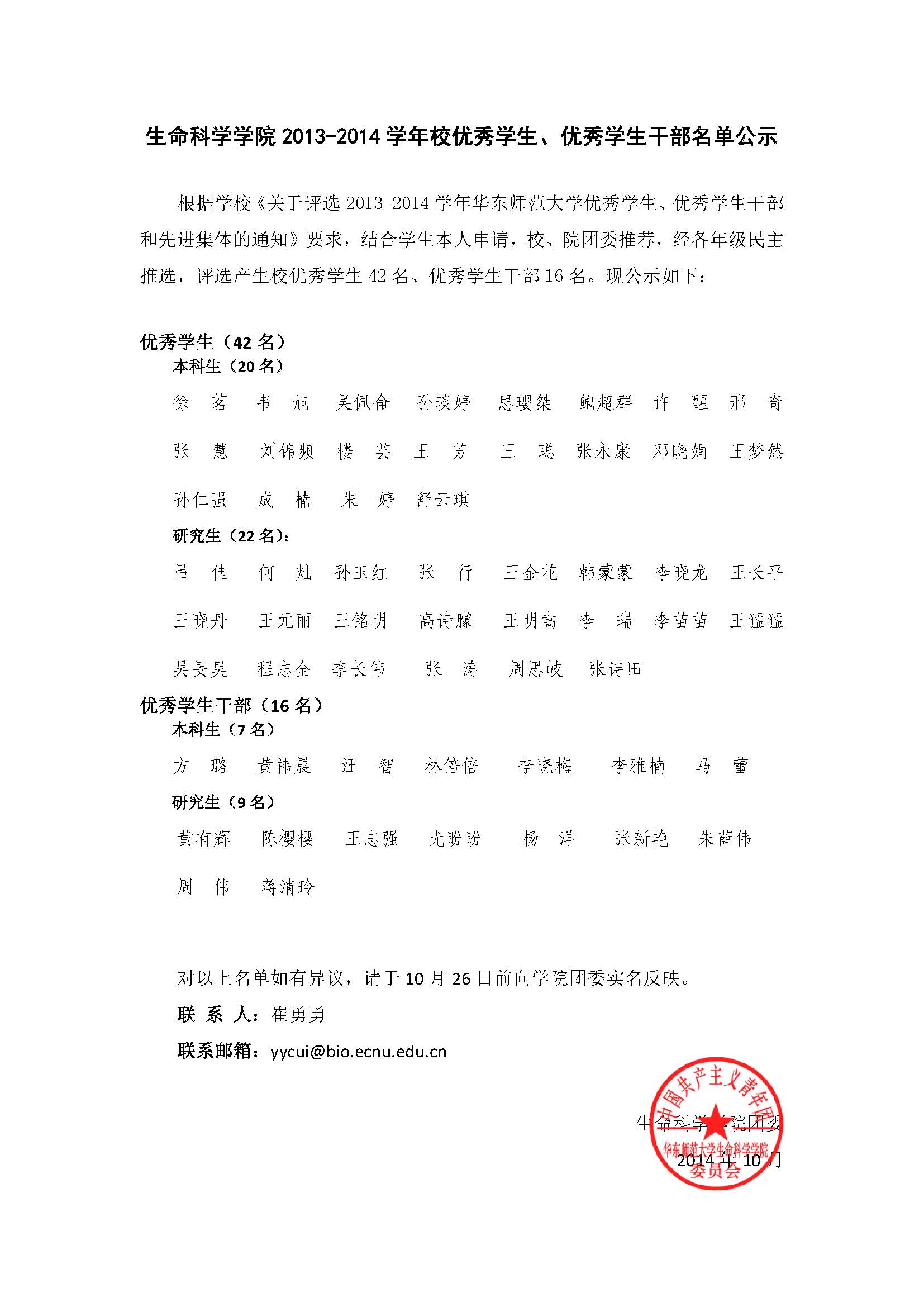 做爱视频 2013-2014学年校优秀学生、优秀学生干部名单公示