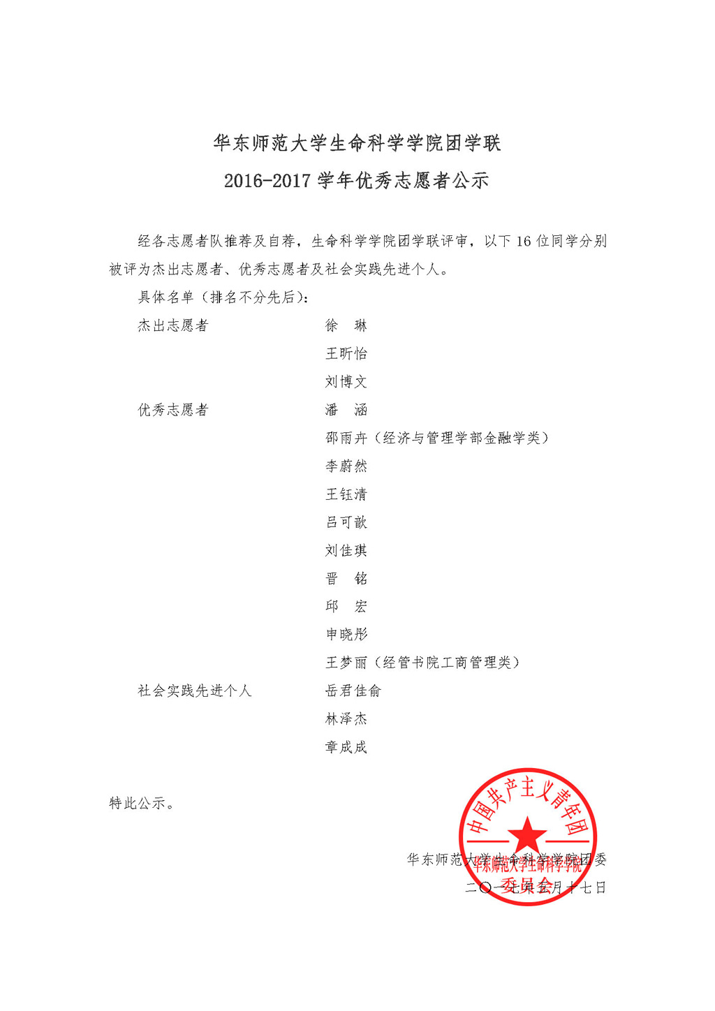 做爱视频 团学联2016-2017学年优秀志愿者公示