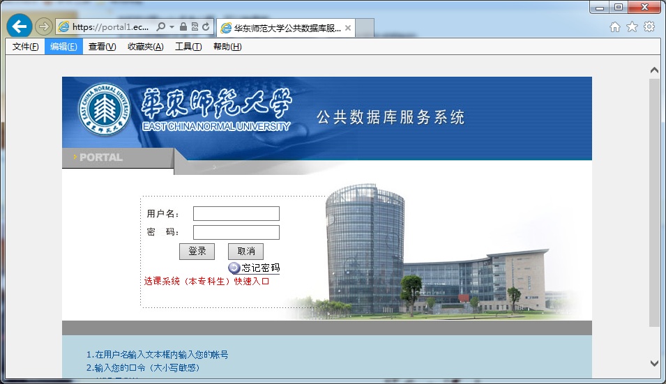1、登陆个人的学校公共数据库页面;