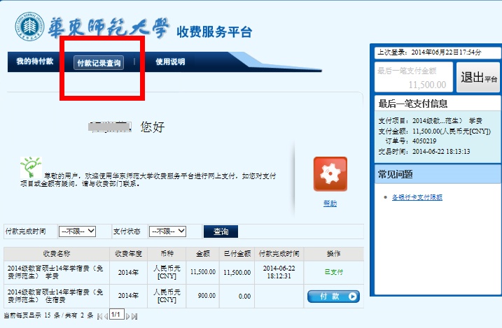 2015—2016学年即将开始,自即日起学生可通过公共数据库缴纳本学年学费和住宿费。缴费学生包括所有在校的全日制本专科生、硕士生和博士生。