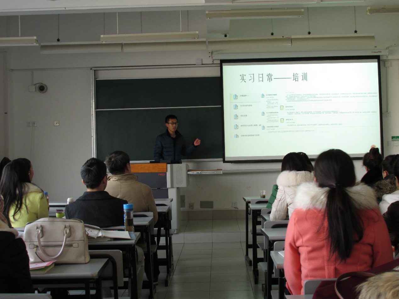接下来,共七个实习小组分别进行了实习总结汇报,肖田中同学介绍了在上海闵行中学、格致中学、市西中学实习生的实习情况,幽默风趣的表达让同学老师们阵阵欢笑,异地实习和自主实习的同学们也通过展现实习中自己的付出和努力赢得了台下同学和老师的掌声和鼓励。同学们都有太多的话要分享,对教学和育人有了不一样的感受和体会,在亲身参与教学的三个月里,张成飞同学对班主任工作有了深刻的认识并与大家分享了心得体会,林恋英同学在班主任工作中与班级同学的“对抗”中更加了解到老师的不易……