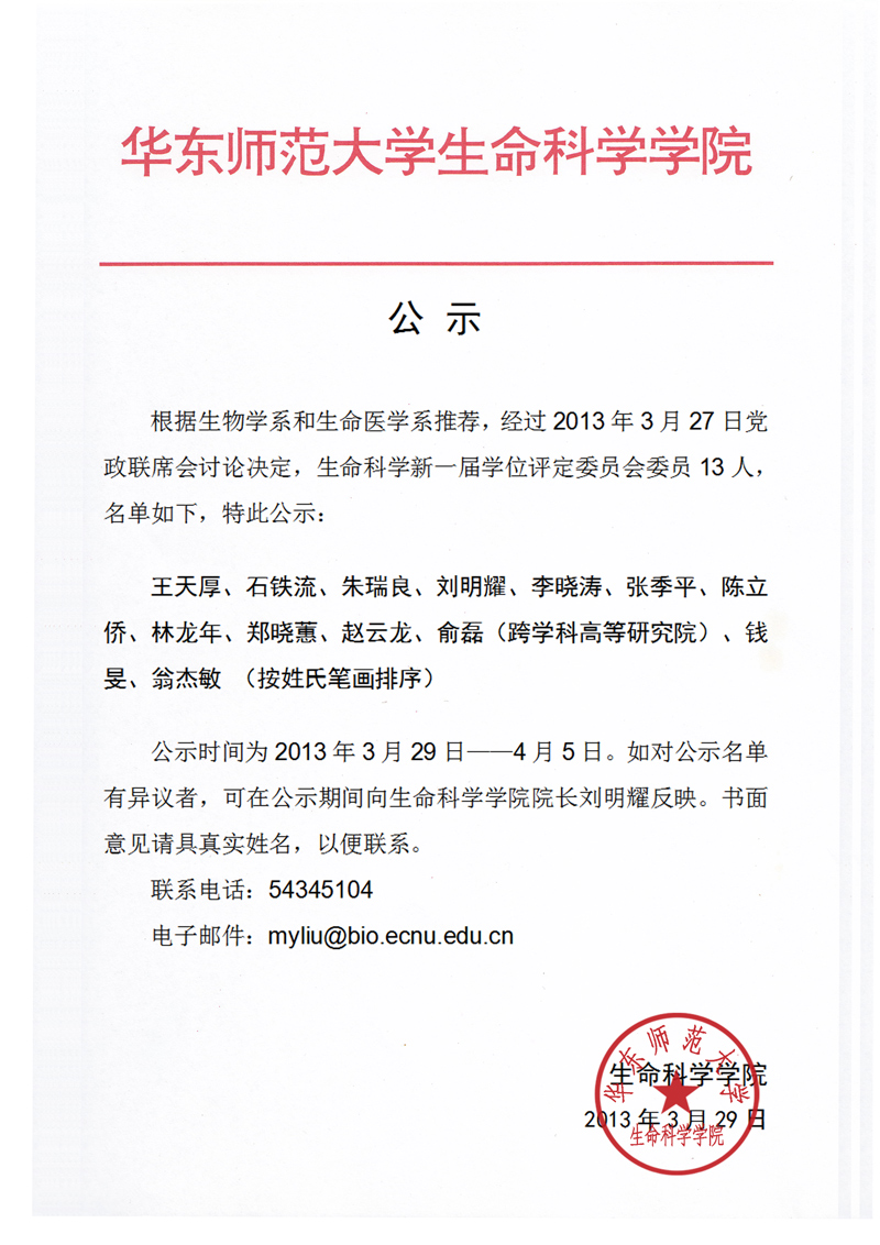 学位评定委员会委员名单公示