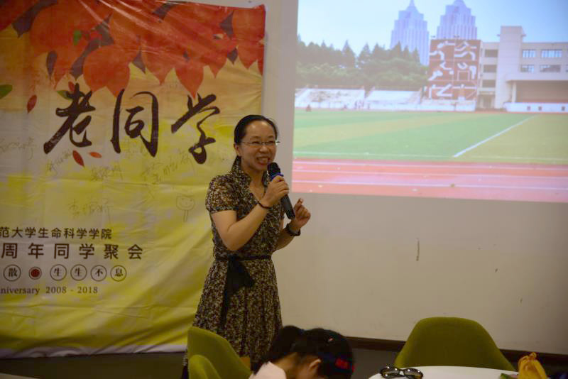 发言环节,校友们抒发了对母校和老师的感恩、思念之情和对同学的祝福,分享了十年来各自的工作感悟和专业思考。同学们轮流介绍了自己目前的状况,有的在金融行业呼风唤雨,有的在医疗领域探索新科技,有的在科研道路上继续探索未知,也有在教育行业教书育人。校友们打趣到各行各业都能看到华师大生科人的身影,正印证了当年所说"21世纪是生命科学的世纪"。交流完毕后同学们表示回去后会建立更完善的通讯录,争取每年都能再次相聚。