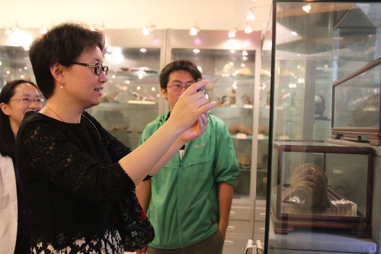 最后在徐敏华副书记及实验教学中心副主任张伟老师的陪同下,张艳萍校友参观了我院的生物博物馆。