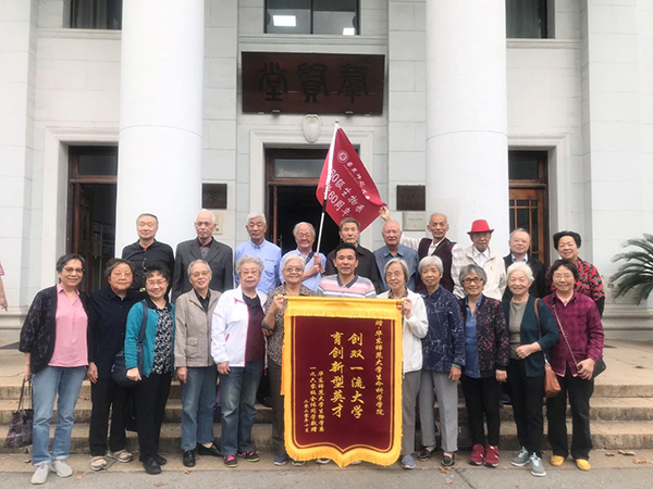 校友日接近尾声,校友为表达母校的热爱和对学院的美好愿景,60级全体同学为做爱视频 赠送了锦旗,祝愿母校及学院“创双一流大学,育创新性英才”。